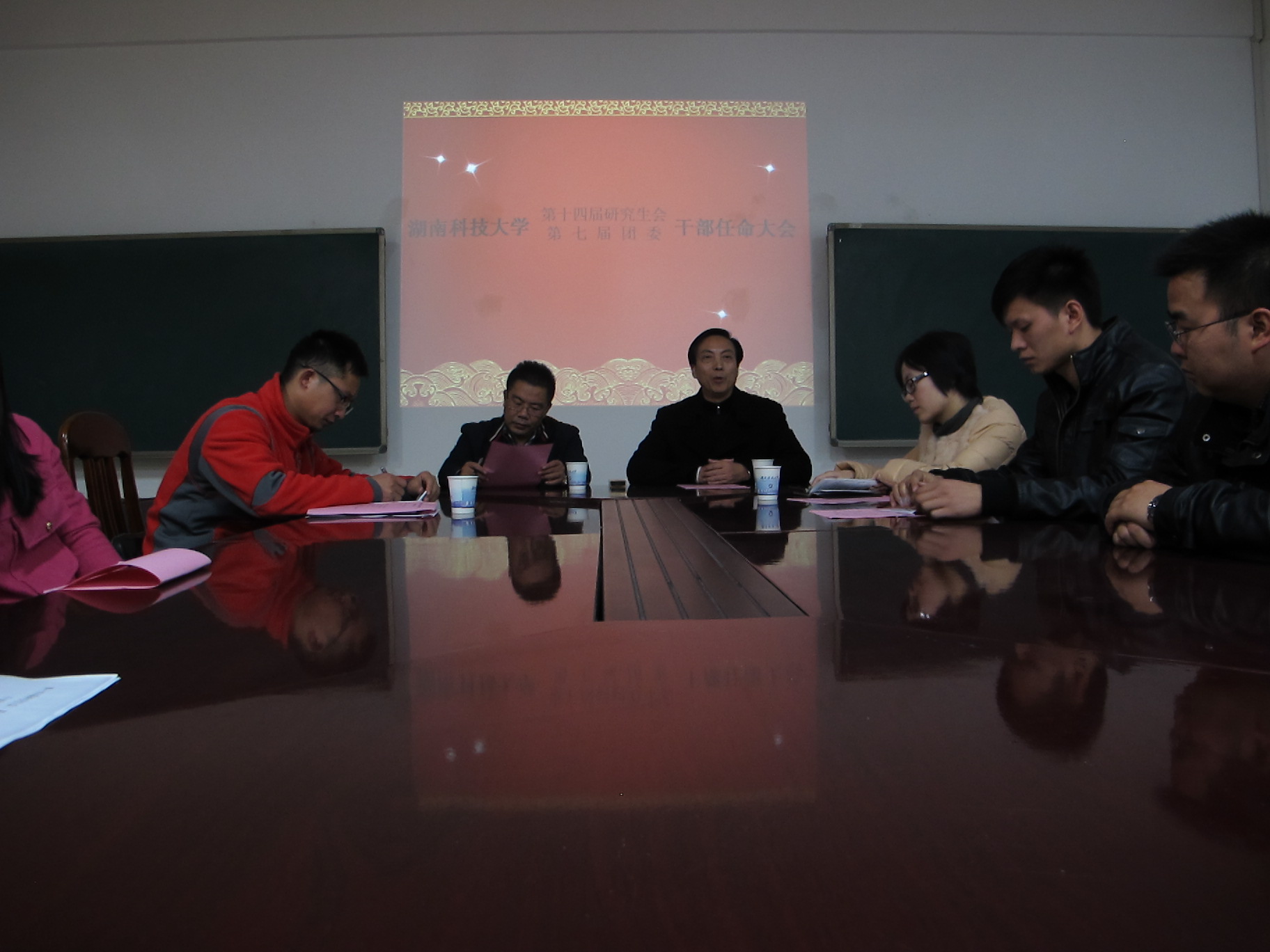 2013年12月12日下午,yl88858永利集团第十四届研究生会、第七届研究生团委干部任命大会在逸夫楼501会议室举行。研究生工作部刘金明部长,研究生工作部胡斌梁副部长,思想教育与管理办公室杨骐玮主任与刘俪喆老师出席会议。与会的还有第十四届研究生会、第七届研究生团委所有干部以及各学院研究生分会主席。会议由新任团委副书记汤亚主持。