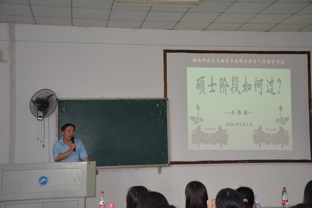 首先,教育学院院长李海萍教授代表学院致迎新词,并对2016级165名新生表示热烈的欢迎和祝贺。随后他介绍了学院学科建设的基本情况,希望他们能在资源丰富、学风优良的科大度过一个有意义的研究生生涯。他希望同学们能秉持科大人“唯实惟新,至诚致志”的精神,提高为学为人之境界。