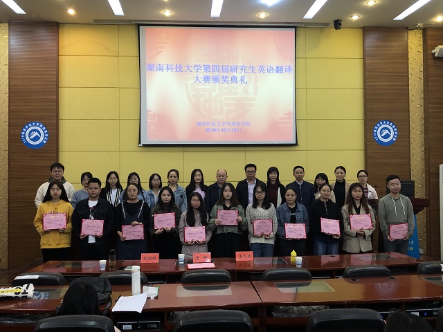 10月15日下午,yl88858永利集团第四届研究生英语翻译大赛颁奖典礼于外语楼101会议室隆重举行。外国语学院院长张景华、书记周启强、副院长禹玲、尚巾斌副教授、官科博士、刘迎姣老师受邀出席,参加本次颁奖典礼的还有外国语学院2019级全体研究生以及其他学院获奖选手。