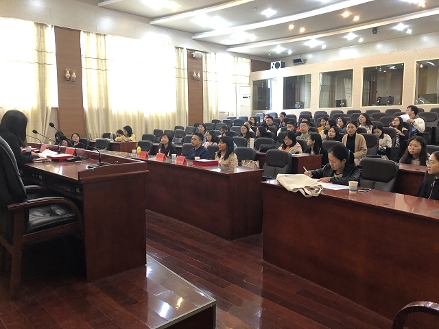 随后,笔译负责人刘迎姣老师发表讲话。她针对监考和阅卷过程中发现的几个问题作了三点说明:第一,一些非翻译专业的学生对翻译不够理解,有些同学一拿到试卷马上就动笔翻译,还有些同学拘泥于词、句这几个层级,导致对语篇整体理解不够。第二,对于文体特征的把握不够。第三,汉译英部分存在比较大的问题,语法还有待提高。她表示,只要同学们认真参加培训,积极配合老师完成各项练习,每天完成翻译练笔,她相信以后一定能有更大的突破。