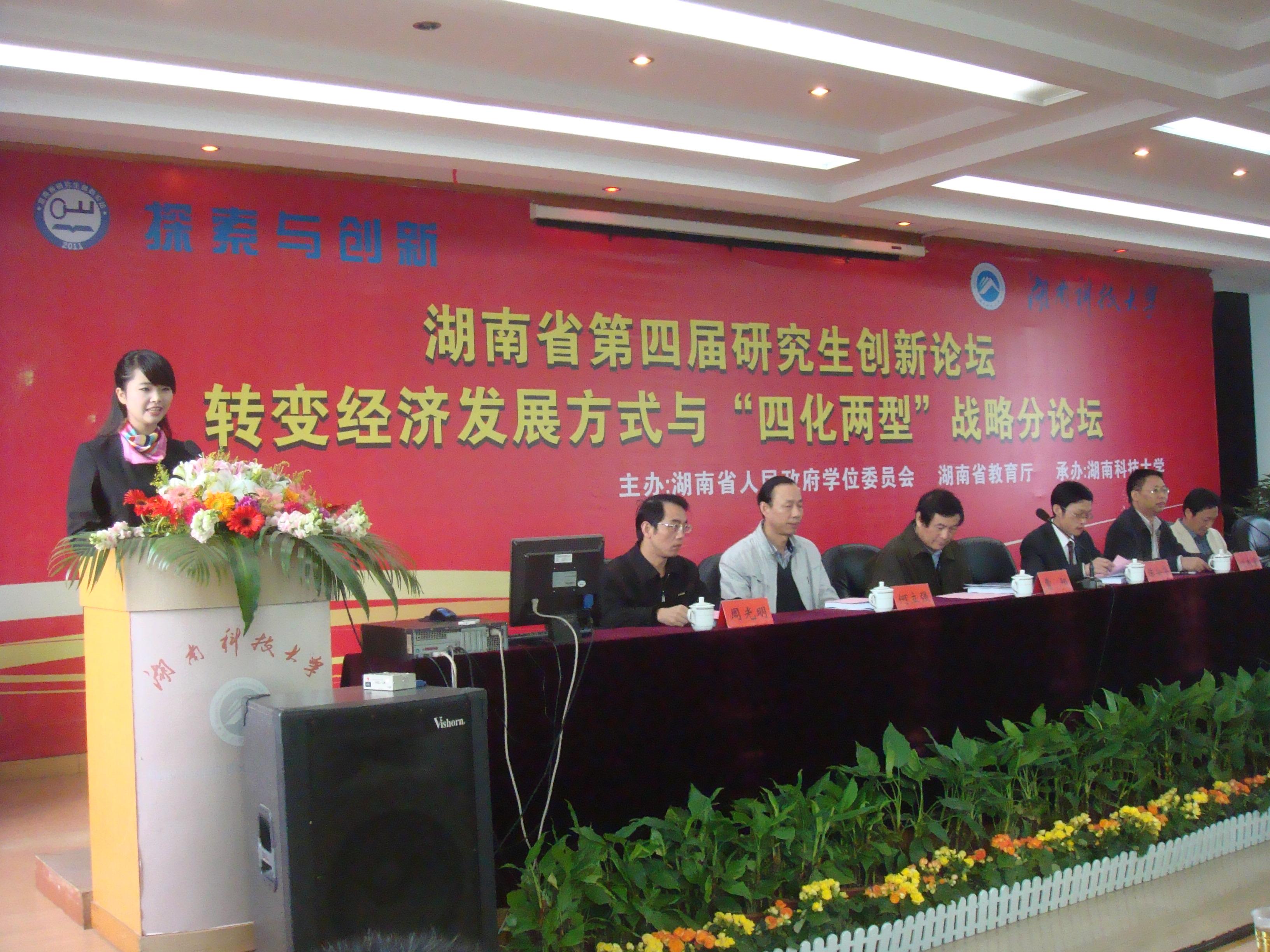 11月26日,由湖南省人民政府学位委员会、湖南省教育厅主办,我校承办的省第四届研究生创新论坛转变经济发展方式与“四化两型”战略分论坛在我校学术交流中心隆重开幕。华中师范大学经济研究中心主任曹阳教授、我校副校长陈安华教授、刘友金教授出席,研究生学院(部)、学生工作处、团委等相关职能部门负责人,商学院领导、各教学院主管研究生yl7703永利集团负责人、党委副书记及来自国防科技大学等 13 所省内高校研究生代表参与会议。